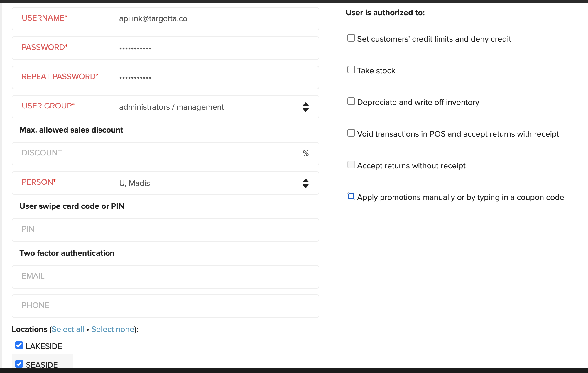 Make sure the user has access to all your locations.