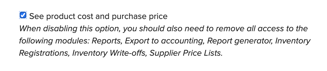 The user group must have the following permissions, and view permission to all modules (including reports).